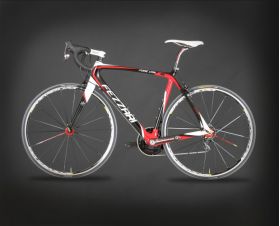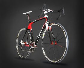 Take, for instance, the state of the art proprietary Fezzari Racing Design Xr7 3K monocoque carbon fiber frame. We used the highest grade of carbon fiber available on the market. We made it even stiffer laterally by enlarging the bottom bracket shell and adding the BB30 bottom bracket/crank design, strengthening the headtube and making it more laterally stiff by enlarging the diameter to a 1.5" tapered design. We've also enlarged the seatstays near the rear axle for more lateral rigidity. We made the Xr7 frame even more vertically compliant for those rides on the cobblestones. We've done this by using an oval design in our top tube and down tube.  The new Xr7 frame is even more aerodynamic than before with the new F4 ultralight bladed carbon fork and internal cable routing on the top tube.  The Xr7 frame was recently tested to be one of the most durable frames on the market, and it weighs a mere 900 grams. Strength, lightweight, rigidity where you need it most, and flexible enough to take the edge off of rough roads -- it's the perfect frame for anyone who wants to get the most out of their riding experience.